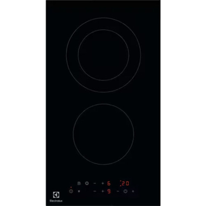 Електрична незалежна варильна поверхня "Доміно", склокераміка, 2 конфорки Hi-Light, двоконтурна конфорка, сенсорне керування. Блокування керування, звукова сигналізація з опцією вимкнення, таймер. Потужність підключення 2,9 кВт.