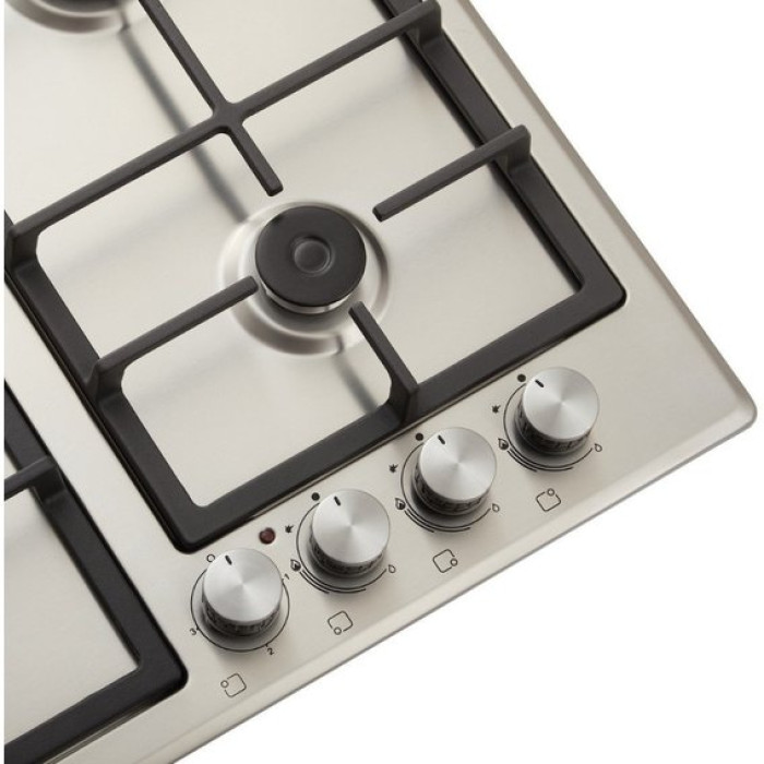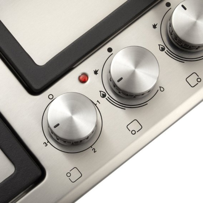 Варильна поверхня ELEYUS Bravo 60 IS H1 CF має робочу поверхню з нержавіючої сталі та розміщені над нею надійні чавунні грати, здатні витримувати вагу навіть великих каструль. Функція автозапалювання забезпечує автоматичний підпал газових пальників при натисканні на відповідну ручку на панелі керування. Система газ-контроль оперативно припинить витік при згасанні або зриві полум'я, що підвищує безпеку експлуатації пристрою.