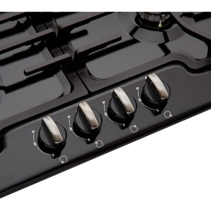 Газова варильна поверхня. Класичний дизайн. Матеріал поверхні – метал. 4 конфорки. Швидка конфорка потужністю 2,5 квт. 2 грати (чавун). Поворотні перемикачі із блокуванням. Газконтроль. Електрозапалювання - автоматичне в ручці. Довжина шнура: 1,1 м. Сучасна ергономічна конструкція. Комплектується жиклерами як для підключення до газової магістралі, так і газового балона (додатковий комплект жиклерів). 5 років офіційної гарантії від виробника.