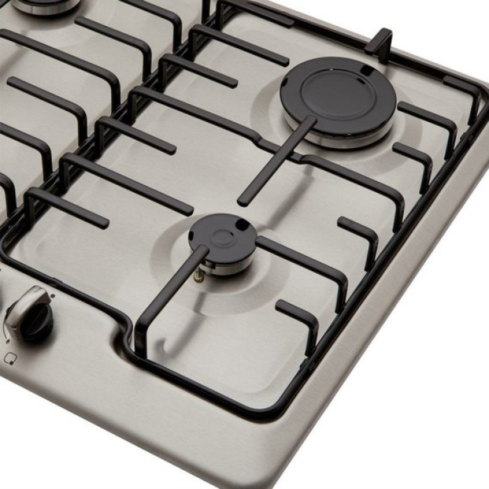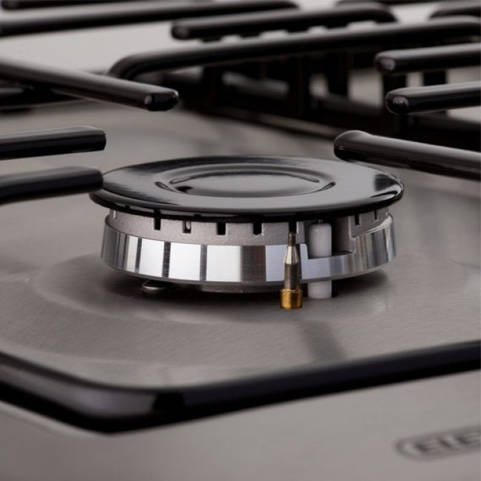 Газова варильна поверхня ELEYUS GRACIA обладнана чотирма конфорками: однією швидкою (2,5 кВт), двома напівшвидкими (1,7 кВт кожна) та однією допоміжною (0,9 кВт). Варто зауважити, що швидка конфорка розроблена таким чином, що її розташування та потужність захищають поверхню стіни від нагріву. Електрозапалювання з керуванням у ручці робить користування приладом легким та невимушеним. Пальники розташовані на поверхні таким чином і на такій відстані, щоб ви могли використовувати улюблений посуд незалежно від його форм та розмірів. Підняті та розгорнуті до користувача ручки керування розташовані на так званому передньому «подіумі», що забезпечить повний комфорт у користуванні поверхнею. Ручки розташовані нижче рівня решіток, що унеможливлює їх контакт з гарячим посудом і запобігає нагріванню.