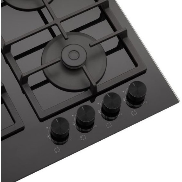 Загартоване скло стає все більш популярним матеріалом для газових варильних поверхонь, адже воно просте у догляді та дуже ефектне. Розміщення пальників дозволяє ефективно використовувати всю робочу поверхню без хвилювань про розміщення посуду. Зміщені праворуч поворотні перемикачі розташовані на безпечній відстані від джерела полум'я, щоб ви не обпалювалися.