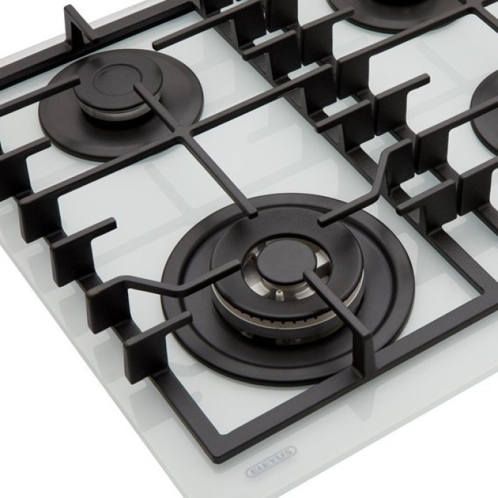 Газова варильна поверхня ELEYUS LORA виконана із загартованого скла товщиною 8 мм, яке має естетичний вигляд та просте у догляді. Красива скляна поверхня однаково гармонійно виглядатиме як у класичному інтер'єрі, так і в модернових стилях. Зворотний бік скла пофарбований високотемпературною керамічною фарбою. Газова варильна поверхня обладнана двома чавунними ґратами. Чавун легкий у догляді, витримує довготривалий вплив високих температур, тому прослужить Вам багато років. Ґрати мають продуману конструкцію, яка забезпечить стійкість посуду і не дозволить їй перевернутися, тому Ви безумовно оціните їхній ергономічний та привабливий дизайн.
