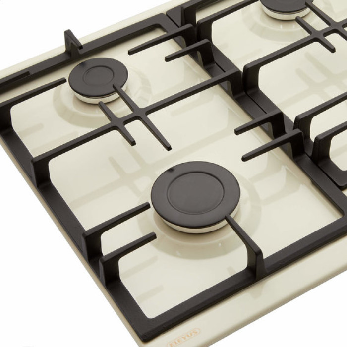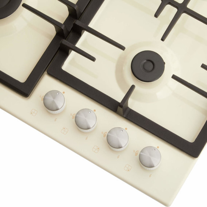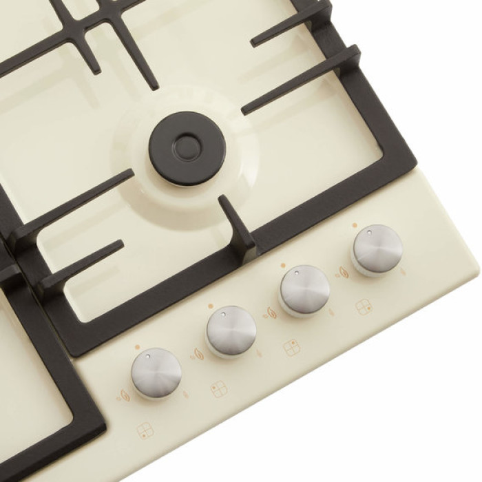 Газова поверхня обладнана чотирма конфорками: швидкою (2,9 кВт), двома напівшвидкими (1,7 кВт кожна) та допоміжною (0,9 кВт). Різний розмір і потужність дозволяють вибрати відповідну конфорку для швидкого нагрівання води, підсмажування страви або гасіння на повільному вогні.