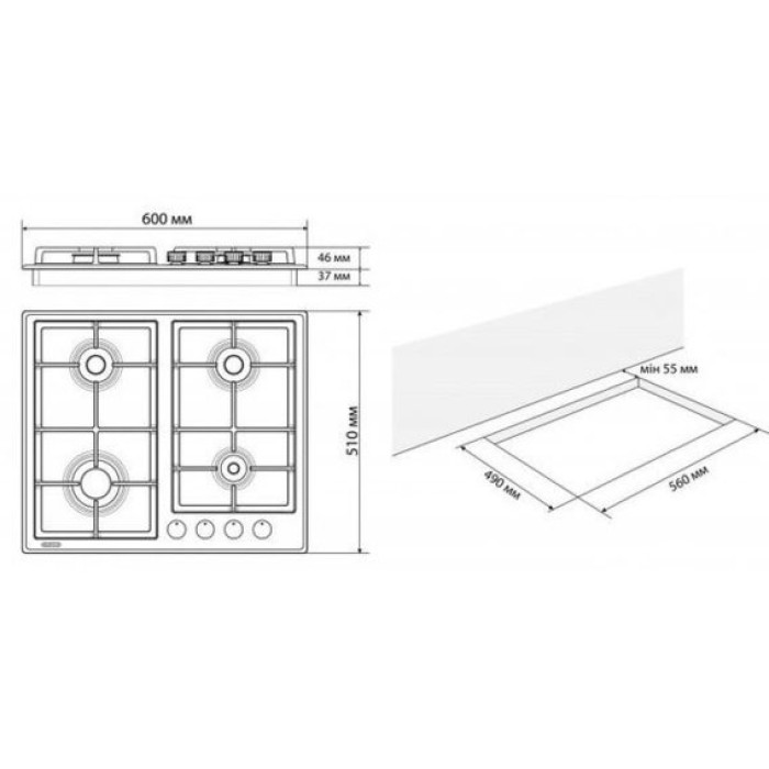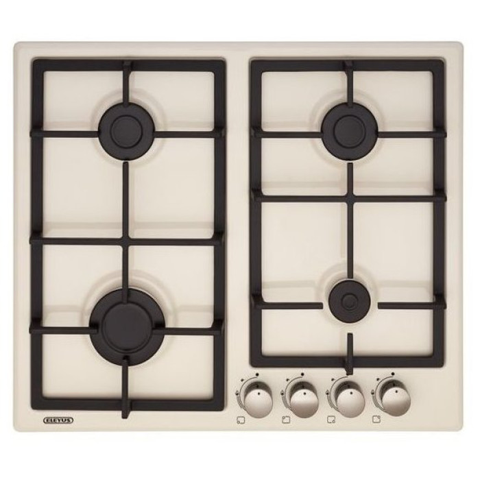 Газова варочная поверхня ELEYUS NIKA 60 оснащена чотирма конфорками: однією швидкою (3 кВт), двома напівбистрими (каждая 1,75 кВт) і однією допоміжною (1 кВт). Електроподжиг з управлінням в ручці облегчает керування приладом і робить його більш безпечним.