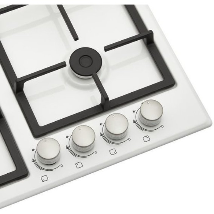 Газова варильна поверхня ELEYUS NIKA 60 обладнана чотирма конфорками: однією швидкою (3 кВт), двома напівшвидкими (1,75 кВт кожна) та однією допоміжною (1 кВт). Електрозапалювання з керуванням у ручці полегшує керування приладом і робить його безпечнішим.