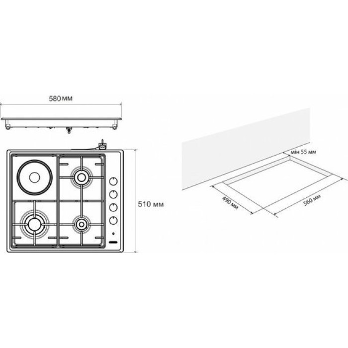 Автоматичний електрозапалювання в ручці управління забезпечує швидку та ефективну роботу газових конфорок та робить користування поверхнею легким. Функція газ-контролю автоматично вимикає подачу газу при випадковому згасанні полум'я, гарантує безпеку вашого будинку.