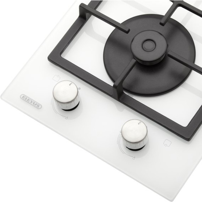 ELEYUS VIRO 30 WH CF – газова варильна поверхня типу «доміно», яка стане чудовим рішенням у кухнях з обмеженим простором завдяки компактному розміру. Стильний та сучасний вигляд газової поверхні виготовленої із загартованого скла гарантує вдале поєднання з електричною варильною поверхнею на одній кухні. Продуманий дизайн ELEYUS VIRO забезпечить комфортне використання газової поверхні, оскільки вона укомплектована задньою швидкою (3кВт) та передньою допоміжною (1кВт) конфорками, розміщення яких не дасть нагріватися передній панелі управління, оскільки швидка конфорка віддалена від перемикачів.