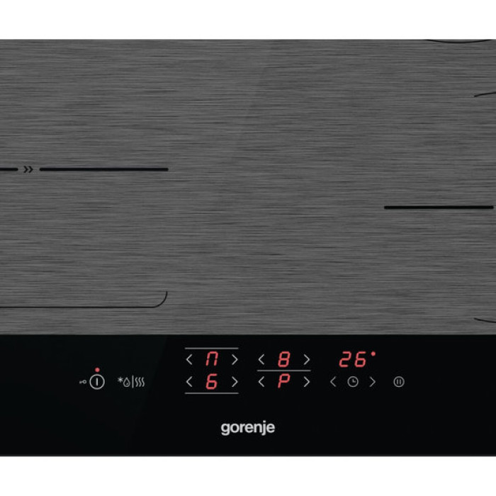Індукційна панель з двома конфорками, що об'єднуються, спрощує приготування у великому посуді. Дві звичайні конфорки поєднуються у велику зону нагрівання одним натисканням на сенсор. Ідеально для приготування основної страви та гарніру одночасно.