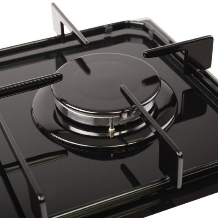 Вбудована функція електрозапалювання в ручках керування дозволяє швидко запалити конфорку без допомоги сірників або запальнички. Міцні сталеві решітки максимально стійкі перед високою температурою, довговічні та практичні у використанні, не деформуються та запобігають зісковзанню посуду з поверхні. Фронтальна панель управління на основі поворотних перемикачів робить її максимально зручною у використанні.