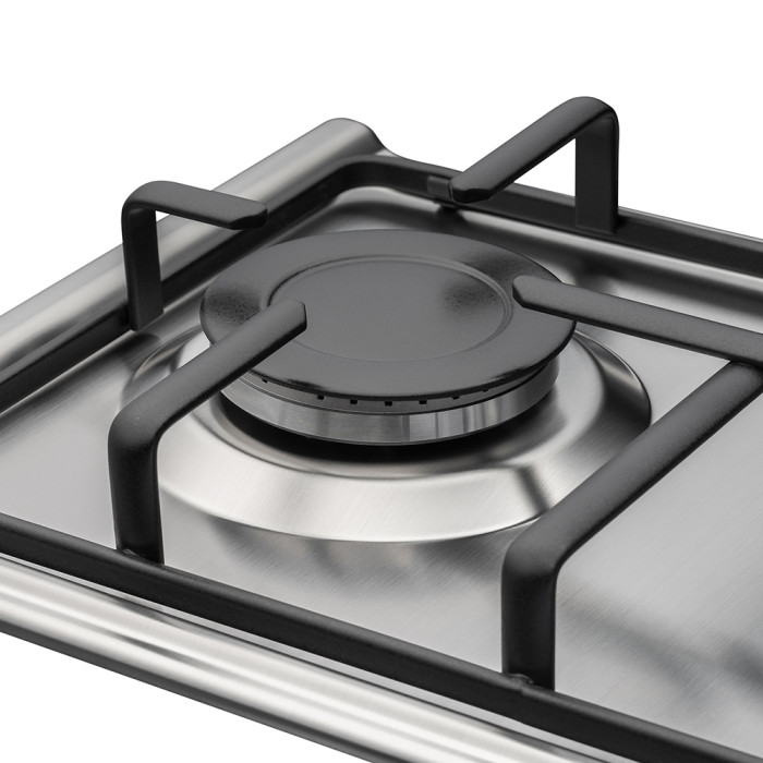Ідеальне рішення для тих, хто ретельно продумує та використовує кожний сантиметр своєї кухні нова 2-х конфорочна варильна поверхня PFX 302 IX B завширшки всього 29 см. Модель виконана з нержавіючої сталі, має емальовані решітки та приємні на дотик круглі ручки управління. Зручність та безпеку гарантують електропідпал, газ-контроль та італійські газові крани Sabaf.