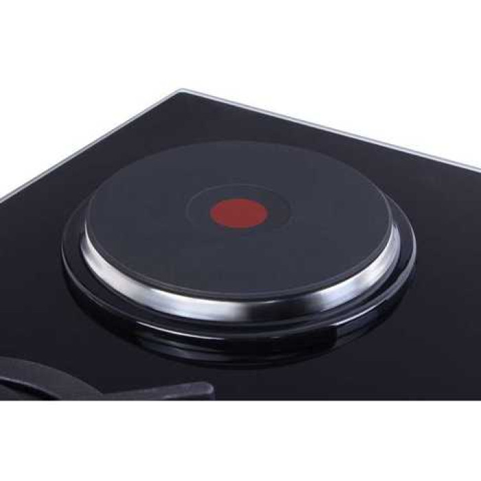 Варочная поверхность выполнена из черного стекла, благодаря чему она выглядит стильно и легко впишется в большинство кухонных интерьеров. На стекле размещены 4 конфорки – одна большая электрическая на 1500 Вт, большая тройная конфорка на 2600 Вт, средняя 1700 Вт и маленькая 1000 Вт. Главной особенностью газовых конфорок есть то, что они производятся по итальянской технологии Sabaf.