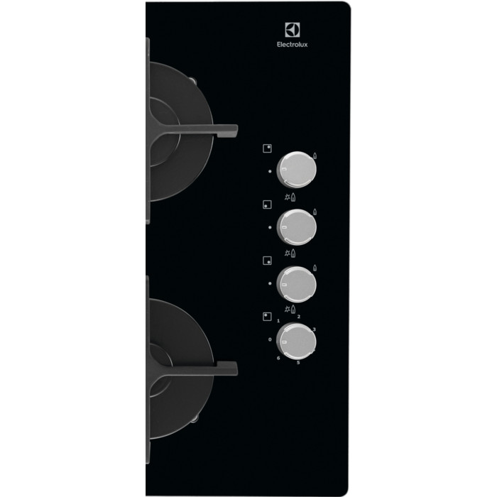 Ручки виконані у сріблястому кольорі. Даний контраст із чорним глянцем варильної панелі відмінно гармонує з будь-якими пристроями в даному кольорі. У процесі монтування Electrolux EGE 6182 NOK в кухонний гарнітур ніщо не виділятиметься. Класичне виконання варильної поверхні добре впишеться в будь-яку кухню. Модель має систему контролю за витіканням газу (функція "газ-контроль"). Якщо полум'я раптом згасло, пристрій автоматично заблокує роботу конфорки та подачу газу. Це убезпечить вас від можливих неприємних наслідків.