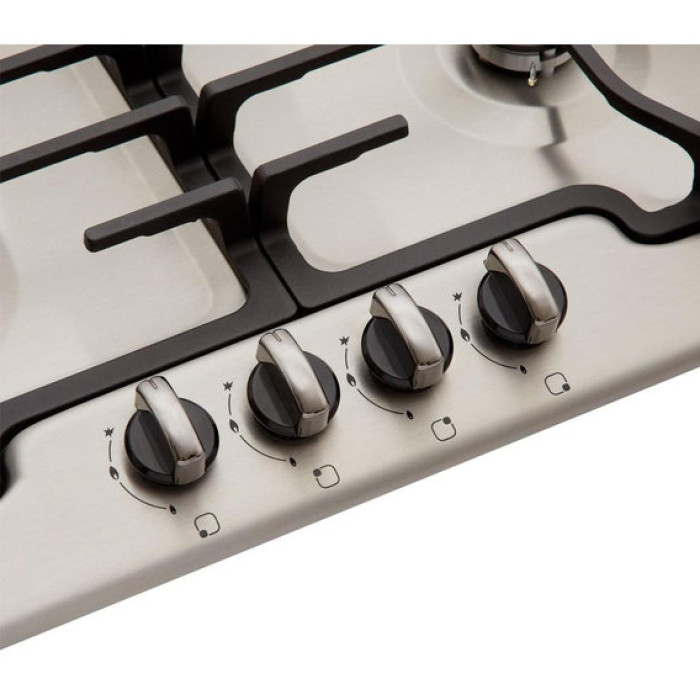 Газова варильна поверхня. Класичний дизайн. Матеріал поверхні – метал. 4 конфорки. Швидка конфорка потужністю 2,5 квт. 2 грати (чавун). Поворотні перемикачі із блокуванням. Газконтроль. Електрозапалювання - автоматичне в ручці. Довжина шнура: 1,1 м. Сучасна ергономічна конструкція. Комплектується жиклерами як для підключення до газової магістралі, так і газового балона (додатковий комплект жиклерів). 5 років офіційної гарантії від виробника.