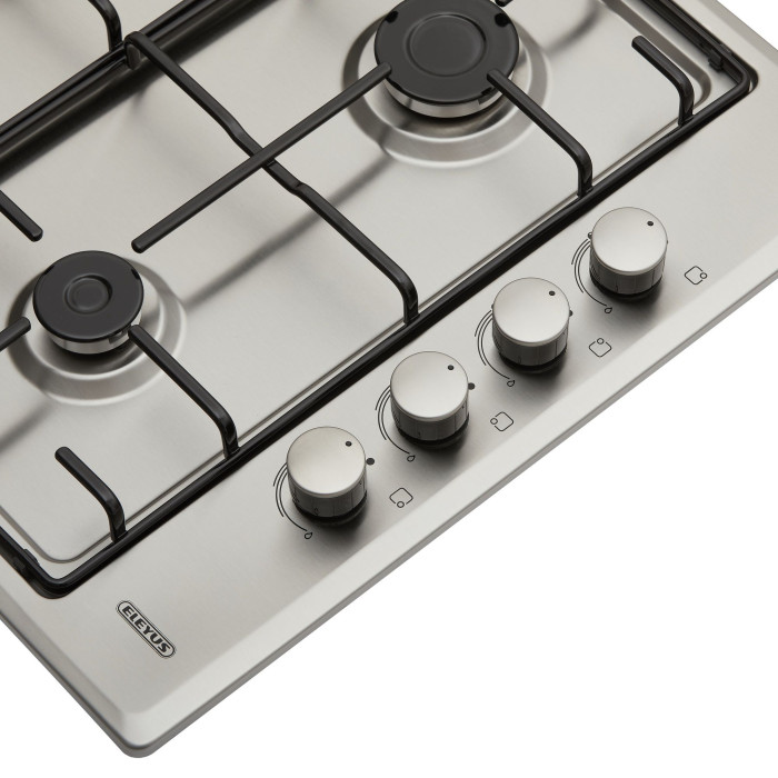 Сучасні газові поверхні ТМ ELEYUS – гарантія безпеки вашого будинку. Газ-контроль вимикає подачу газу у разі випадкового загасання полум'я. Поворотні перемикачі блокуються і унеможливлюють випадкове включення (для включення слід натиснути на перемикач і повернути його) і тим самим роблять користування приладом безпечнішим. Для підтвердження високої якості та безпеки у використанні всі газові варильні поверхні ТМ ELЕYUS проходять чотирирівневий контроль герметичності з'єднань газової арматури на різних етапах виробництва.
