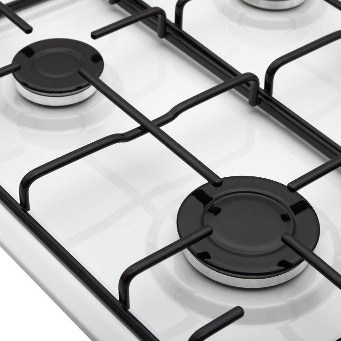Поверхня газової варильної поверхні ELEYUS NOTA 60 EF виготовлена з високоякісного емальованого металу, який є довговічним, зберігає естетичний вигляд протягом тривалого часу та легкий у догляді. Поверхня обладнана двома емальованими металевими ґратами, які є міцними та стійкими до прогоряння, а також зручними у догляді.