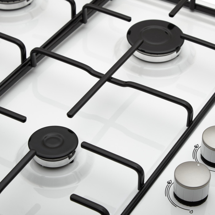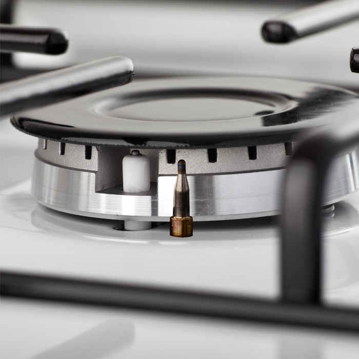 Газова варильна поверхня ELEYUS NOTA EF продумана та ергономічна, що так важливо для щоденного приготування їжі. Ручки управління розташовані праворуч від пальників, на безпечній відстані від допоміжного пальника. Ручки розташовані праворуч від решіток, що унеможливлює їх контакт з гарячим посудом і запобігає нагріванню. Крім того, швидка конфорка розташована спереду зліва, що дозволяє використовувати посуд великих об'ємів та захищає поверхню стіни від нагрівання. Електрозапалювання з керуванням у ручці – це зручно, сучасно та безпечно.