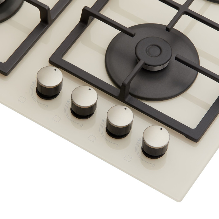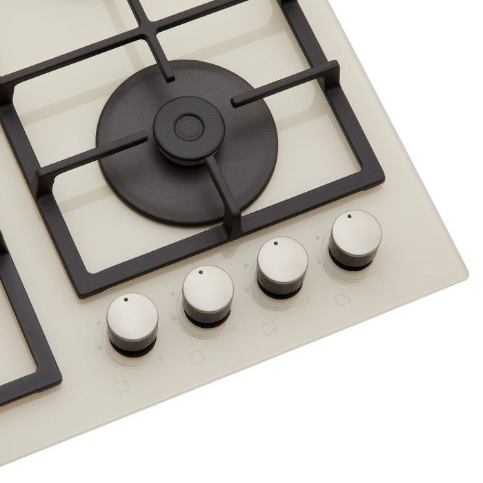 Газова варильна поверхня ELEYUS VITA BG CF виконана із загартованого скла, яке дуже просте у догляді та на довгий час збереже естетичний зовнішній вигляд. Крім того, скляна поверхня однаково гармонійно виглядатиме в різних інтер'єрах. Зворотний бік скла пофарбований високотемпературною керамічною фарбою. Газова варильна поверхня обладнана металевими ґратами зручного та ергономічного дизайну. Чавун легкий у догляді, витримує довготривалий вплив високих температур, тому прослужить Вам багато років.