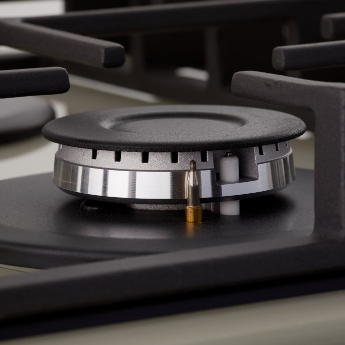 Ми подбали, щоб Ви могли готувати на варильній поверхні ELEYUS VITA BG CF найрізноманітніші страви, тому обладнали її чотирма конфорками: однією швидкою (3 кВт), двома напівшвидкими (1,75 кВт кожна) та однією допоміжною (1 кВт). Пальники розташовані на поверхні таким чином і на такій відстані, щоб Ви могли використовувати улюблений посуд незалежно від його форм та розмірів. Електрозапалювання з керуванням в ручці робить користування приладом простішим - сірники та запальнички Вам більше не потрібні. Для підвищення ергономічності приладу ручки керування розташовані у правій частині поверхні, на безпечній відстані від допоміжного пальника. Ручки розташовані нижче рівня решіток, що унеможливлює їх контакт з гарячим посудом і запобігає нагріванню. Крім того, швидка конфорка розташована спереду ліворуч і частково висунута вперед, що дозволяє використовувати посуд великих об'ємів та захищає поверхню стіни від нагрівання. Безумовно, питання безпеки понад усе! Саме тому на поверхні доступна функція газоконтролю - подача газу автоматично припиниться, якщо полум'я випадково згасне, що особливо важливо для Вашої безпеки. Газова варильна поверхня ELEYUS VITA BG CF комплектується форсунками як для підключення до газової магістралі, так і газового балона (додатковий комплект форсунок).