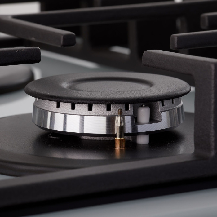 Ми подбали, щоб Ви могли готувати на варильній поверхні ELEYUS VITA BG CF найрізноманітніші страви, тому обладнали її чотирма конфорками: однією швидкою (3 кВт), двома напівшвидкими (1,75 кВт кожна) та однією допоміжною (1 кВт). Пальники розташовані на поверхні таким чином і на такій відстані, щоб Ви могли використовувати улюблений посуд незалежно від його форм та розмірів. Електрозапалювання з керуванням в ручці робить користування приладом простішим - сірники та запальнички Вам більше не потрібні. Для підвищення ергономічності приладу ручки керування розташовані у правій частині поверхні, на безпечній відстані від допоміжного пальника. Ручки розташовані нижче рівня решіток, що унеможливлює їх контакт з гарячим посудом і запобігає нагріванню. Крім того, швидка конфорка розташована спереду ліворуч і частково висунута вперед, що дозволяє використовувати посуд великих об'ємів та захищає поверхню стіни від нагрівання. Безумовно, питання безпеки понад усе! Саме тому на поверхні доступна функція газоконтролю - подача газу автоматично припиниться, якщо полум'я випадково згасне, що особливо важливо для Вашої безпеки. Газова варильна поверхня ELEYUS VITA BG CF комплектується форсунками як для підключення до газової магістралі, так і газового балона (додатковий комплект форсунок).