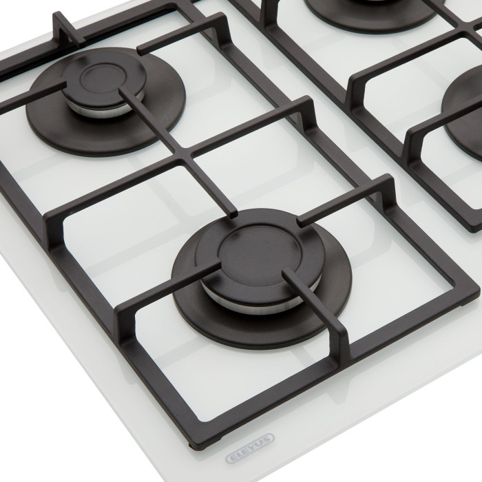 Газова варильна поверхня ELEYUS VITA BG CF виконана із загартованого скла, яке дуже просте у догляді та на довгий час збереже естетичний зовнішній вигляд. Крім того, скляна поверхня однаково гармонійно виглядатиме в різних інтер'єрах. Зворотний бік скла пофарбований високотемпературною керамічною фарбою. Газова варильна поверхня обладнана металевими ґратами зручного та ергономічного дизайну. Чавун легкий у догляді, витримує довготривалий вплив високих температур, тому прослужить Вам багато років.