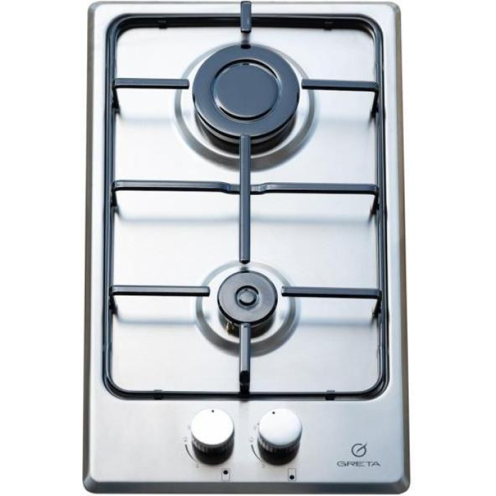Варильна поверхня Greta KHG 320 N 282 X зроблена у вигляді простої панелі з двома конфорками. Такий варіант є компактним рішенням, яке дозволяє вмістити техніку на площу невеликого розміру. Конфорки мають велику міцність, постачають газову суміш у найкращому вигляді, забезпечують яскраве полум'я.