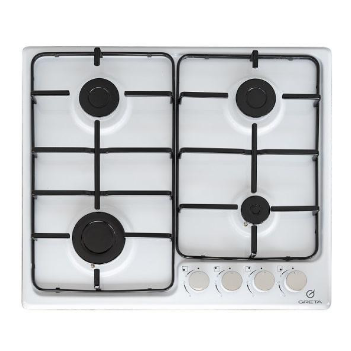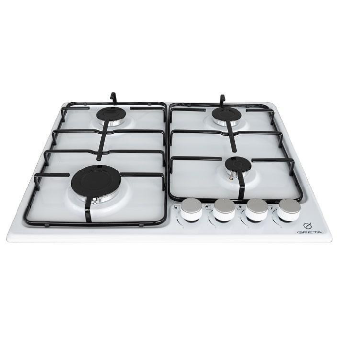Варильна поверхня Greta KHG 640 N 281 W призначена для приготування їжі на вогні. Джерелом полум'я є газ. Панель виготовлена з емальованого металу, який став ідеальною основою для представленої техніки. Вона виглядає бездоганно за рахунок своєї ідеально гладкої фактури, легко очищається від забруднень і не деформується навіть за прямої дії вогню.
