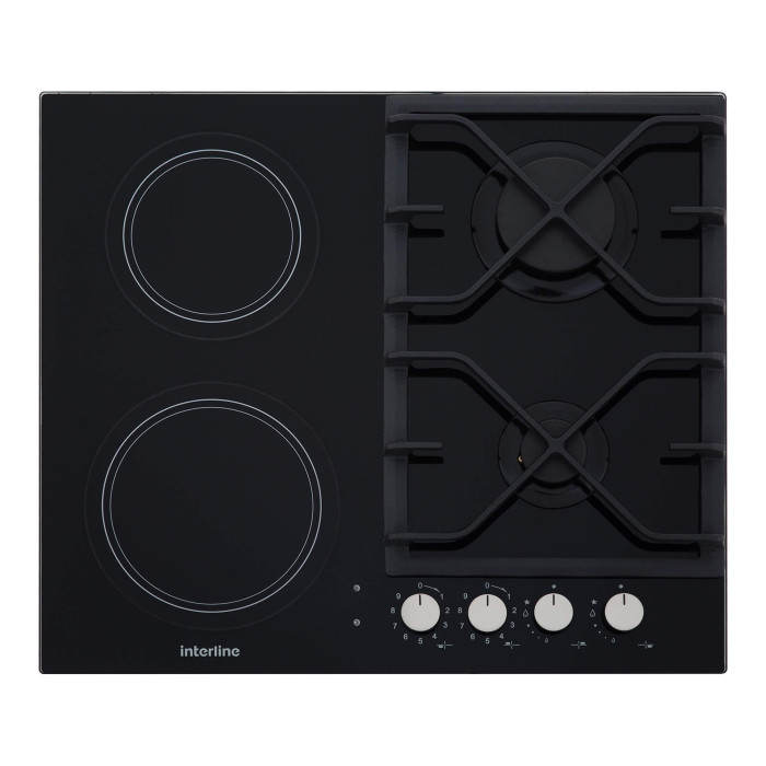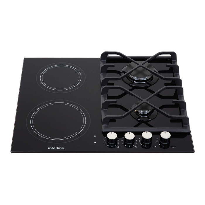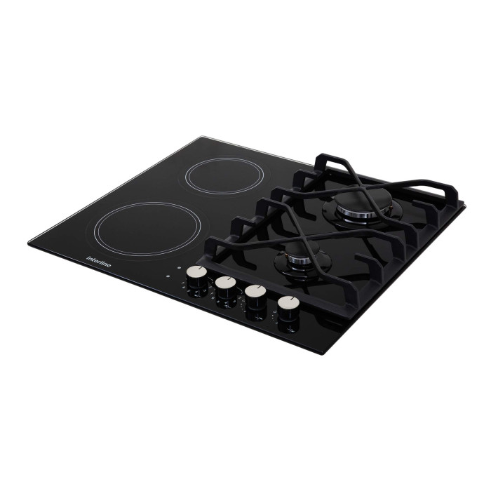 Комбінована варильна поверхня INTERLINE HCG 561 FGT BA оснащена двома газовими пальниками та двома електро, що значно розширює її можливості під час приготування їжі. У цій моделі передбачено просте ручне керування, ви зможете точно користуватися потужністю газового пальника або просто включити режим томлення на електричній конфорці.
