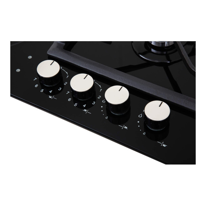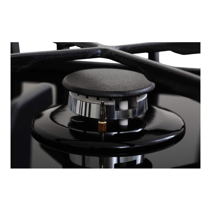 Вбудований в ручки електрозапалювання дозволяє швидко і легко підпалити конфорки. Чавунні ґрати забезпечують стійке положення посуду на варильній поверхні.