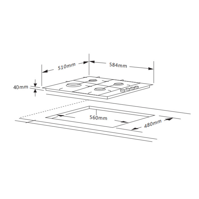 Механічні поворотні перемикачі розташовані праворуч. Для більшої безпеки експлуатації варильної поверхні передбачено газ-контроль.