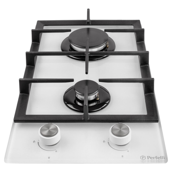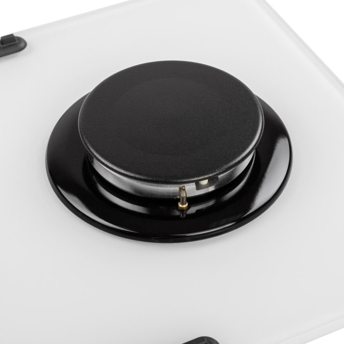 Варильна поверхня "газ на склі", колір-білий, ширина 29см, 2 газові конфорки, газ-контроль, електрозапалювання в ручках управління, чавунна решітка, фронтальна панель управління, перехідники (жиклери) на балонний газ.