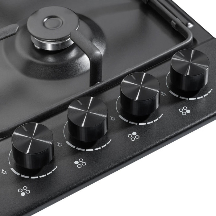 Ця варильна поверхня оснащена чотирма зонами нагріву, які дозволяють готувати кілька страв одночасно. Кожна зона має окремий регулятор потужності, що дозволяє точно встановлювати потрібну температуру. Крім того, вона має функцію захисту від дитячого доступу, що забезпечує безпеку використання.