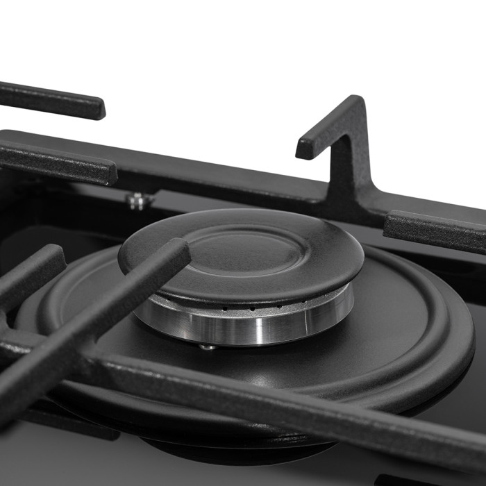 Управління варильною поверхнею PYRAMIDA PFG 604 T BL H здійснюється за допомогою механічних поворотних ручок, які забезпечують точне регулювання температури. Захист від випадкового відкриття газу забезпечує безпеку користування.