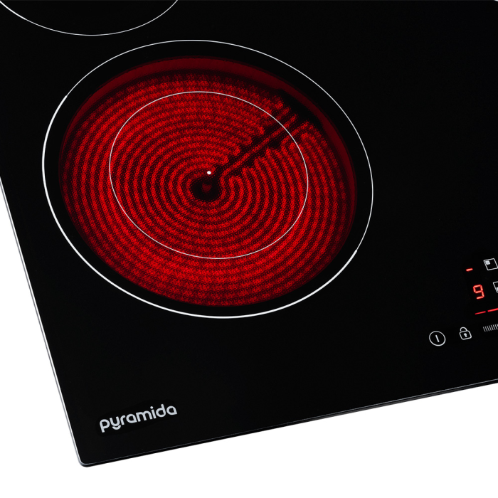 Крім того, варильна поверхня PYRAMIDA VCH P 642 має електронне керування з LED-дисплеєм, що дозволяє точно налаштувати температуру готування. Вона також оснащена захистом від дитини, що забезпечує безпеку використання приладу у присутності маленьких дітей.