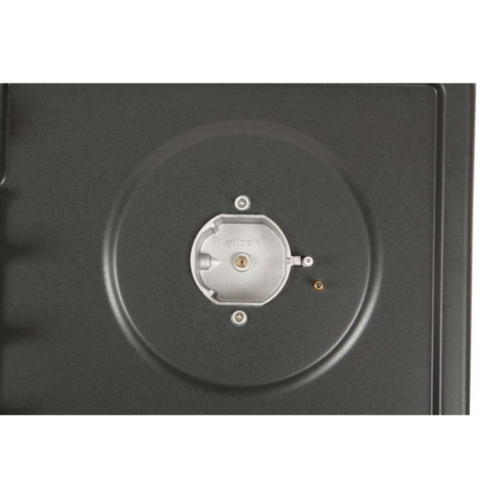 На робочому столі варильної панелі розташовано 4 газові конфорки від бренду ALBEK. У кожній із конфорок встановлена система газ-контролю та елемент для автоматичного підпалу. За замовчуванням у конфорках встановлені жиклери для магістрального газу, але в комплекті також є набір жиклерів під балонний газ.