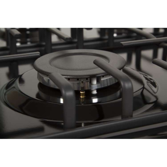 На робочому столі розміщено чотири газові конфорки різних розмірів та потужності – від 1 до 2,6 кВт. А над ними надійні чавунні грати, які витримують навіть самий об'ємний посуд. Ручки управління виконані з жаростійкого пластику, що не дає їм перегріватися та виділяти неприємні токсичні запахи. Вони розташовані спереду посередині, щоб доступ до них був однаково комфортним і для шульги, і для правші.