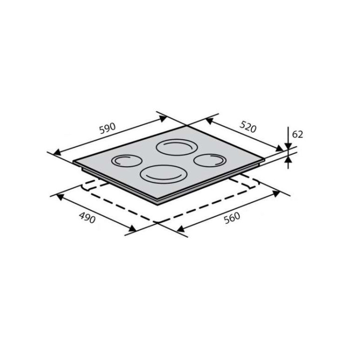 Техніка виконана з жароміцного скла класичного чорного кольору, на ньому розташовані чотири робочі зони. У моделі реалізовано два види конфорок. Дві великі, з діаметром 18 см, мають потужність 1800 Вт. Дві маленькі конфорки, з діаметром 16,5 см, мають потужність 1200 Вт. Особливість електричної склокерамічної панелі полягає у швидкому нагріванні, що зменшує енерговитрати.