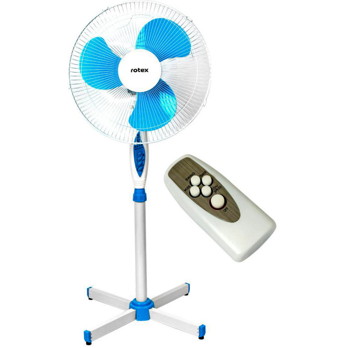 Вентилятор підлоговий, потужність 40 Вт, діаметр 40 см, функція обертання, 3 швидкості, пульт дистанційного керування, хрестоподібна підставка, регульована висота, максимальна висота 120 см, колір: білий