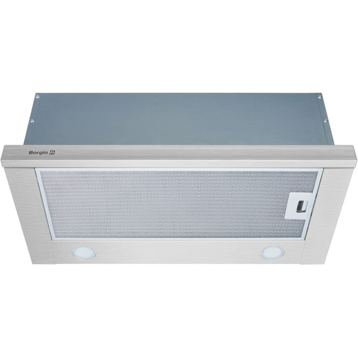 Вбудована витяжка BORGIO TLF (TR) монтується у шафку над варильною поверхнею. Для того, щоб привести витяжку в робочий режим, необхідно потягнути на себе висувну панель і вибрати на кнопці регулювання панелі керування одну з трьох швидкостей. Кнопки розташовані за висувною панеллю, там, де і кнопка увімкнення/вимкнення підсвічування.