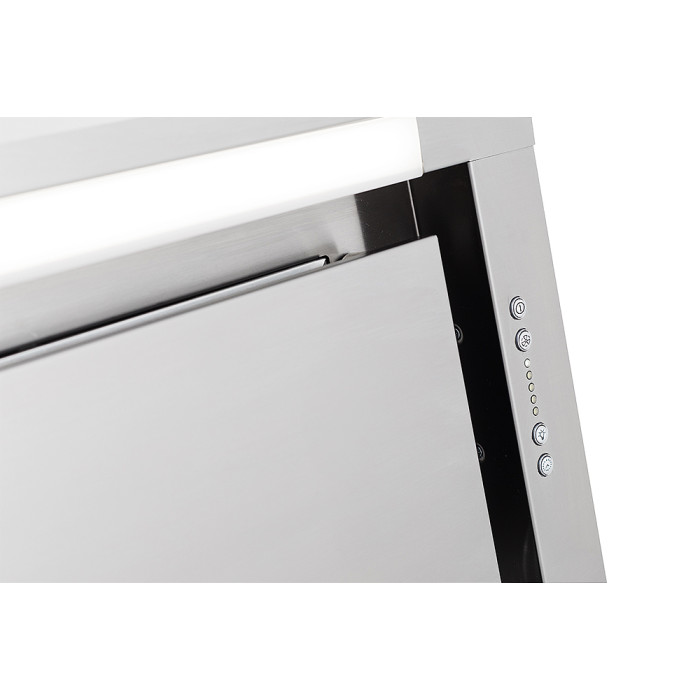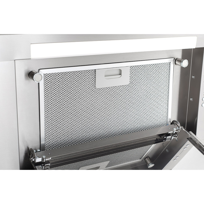 Бестселер в Україні вже 3 роки поспіль! Витяжка зроблена з нержавіючої сталі, товщина корпусу всього в 1 мм дозволяє зливатися з корпусом шафки на кухні. Легка у догляді. Периметральне всмоктування створює більший тиск над варильною поверхнею, у результаті повітря очищається ще інтенсивніше. А декоративна панель, що закриває алюмінієві фільтри, робить витяжку ще цікавішою в інтер'єрі. LED підсвічування, у вигляді лінії, дає рівномірне, приємне світло над варильною поверхнею. Корпус витяжки закритий декоративною нержавіючою сталлю, без жодного видимого гвинта. Компактний розмір корпусу витяжки, дозволяє зробити додаткові полички для зберігання спецій. Витяжка 100% зроблена в Італії!