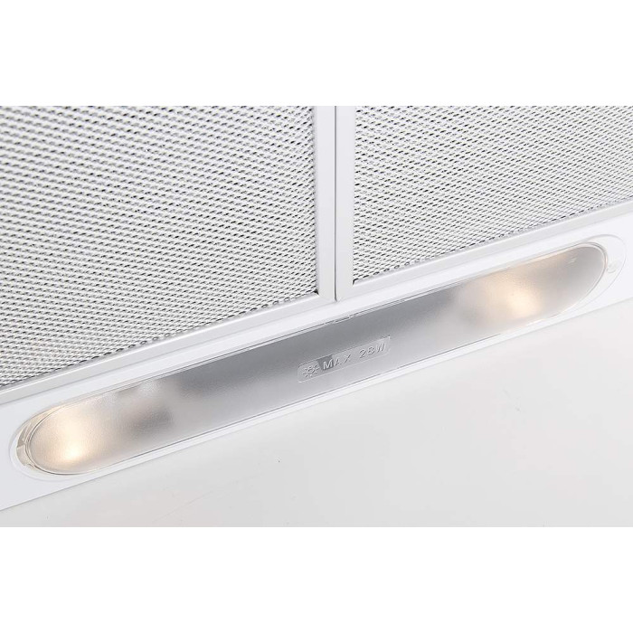 Купольна витяжка Elica MISSY LUX WH/A/60 виготовлена з нержавіючої сталі та рекомендується для приміщень площею не більше 28,5 кв.м. Вона служить для очищення кухонного повітря методом його відведення у вентиляційний канал або, як опція, способом рециркуляції (за наявності додатково придбаного вугільного фільтра). Її монтаж провадиться на стіну. Встановлений двигун працює на трьох швидкостях з максимальною продуктивністю 650 куб.м на годину, при цьому рівень шуму не перевищує 59 дБ. У моделі є алюмінієвий фільтр грубої очистки (жировий), що очищає повітря від частинок жиру. Для освітлення робочої зони використані дві галогенні лампи потужністю по 28 Вт. Керується купольна витяжка Elica MISSY LUX WH/A/60 зручними механічними кнопками.