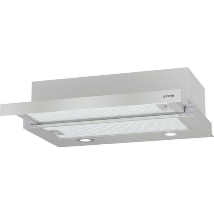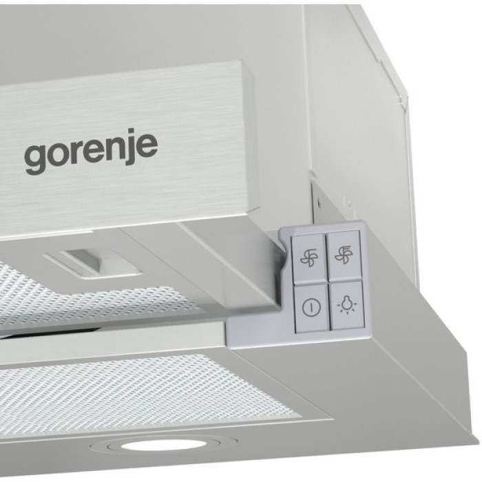 Незважаючи на те, що витяжка Gorenje TH62E4 призначена для вбудовування в меблі, її дизайн грає роль. Декоративна передня планка та корпус витяжки можуть випускатися у різних варіантах кольору. При цьому якість металу досить висока за мірками класу. Це знижує кількість вібрацій і неприємного шуму при роботі, у тому числі і на високій швидкості. А додає вражень симпатична світлодіодна система освітлення, яка дасть хорошу видимість у зоні варильної поверхні та дозволить обійтися без включення основного світла.