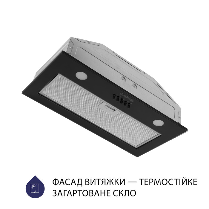 Завдяки чудовим ергономічним якостям, якими наділена модель Minola HBI 52621 BL GLASS 700 LED, вона підійде як маленькій, так і стандартній кухні. Частина конструкції пристрою, яка повинна бути прихована від очей, повністю ховається у шафі, а робоча частина залишається на увазі та органічно доповнює загальний дизайн. Фасадна частина витяжки виготовлена із загартованого скла чорного кольору, яке відрізняється високою жаростійкістю, стійкістю до механічних пошкоджень та своїм естетичним виглядом, що припаде до душі будь-якому кулінару. Під склом розташовані LED-лампи. Це захищає їх від забруднень, тим самим спрощуючи догляд за витяжкою.