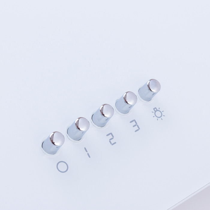 Витяжка обладнана механічною панеллю керування. Вона не тільки зручна в роботі, а підкреслює мінімалістичний дизайн пристрою. Панель розташовується на фасадній частині.