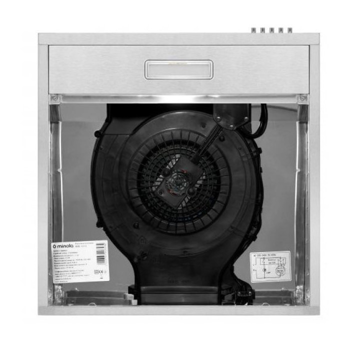 Плоска кухонна витяжка Minola HPL 513 обладнана одним двигуном потужністю 100 Вт. Максимальна продуктивність пристрою в режимі відведення повітря становить 550 м³/год, що дозволяє ефективно видаляти випари, небажані запахи та кіптяву, які утворюються в процесі приготування їжі. Витяжка плоскої форми нагадує вбудовану, але вона набагато компактніша. Незважаючи на це, пристрій не поступається своїми характеристиками та якістю витяжкам інших типів. Невелика висота та пристінний тип монтажу дозволяють легко вбудувати цю модель під навісну шафу. Механічний перемикач керування розташований збоку. На ньому знаходяться кнопки перемикання швидкостей та увімкнення/вимкнення освітлення. Витяжка для кухні обладнана LED-лампою потужністю 2 Вт. Саме світлодіодні лампи є кращим вибором для додаткового освітлення кухонної поверхні, оскільки вони дозволяють суттєво знизити витрати на електроенергію, а також мають високу світловіддачу.
