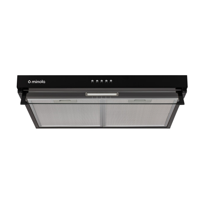 Кухонна витяжка Minola HPL 614 обладнана двома захисними алюмінієвими жировими фільтрами. Вони виготовлені з декількох шарів алюмінієвої сітки, що забезпечує надійний захист двигуна та інших деталей від потрапляння жиру та бруду. Очищення алюмінієвих фільтрів слід проводити кожні 2-3 місяці вручну в мильному розчині або у посудомийній машині.