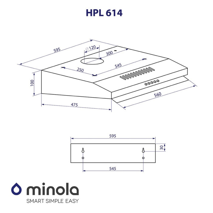 Плоска кухонна витяжка Minola HPL 614 обладнана одним двигуном потужністю 80 Вт. Максимальна продуктивність пристрою в режимі відведення повітря становить 450 м³/год, що дозволяє ефективно видаляти випари, небажані запахи та кіптяву, які утворюються в процесі приготування їжі.