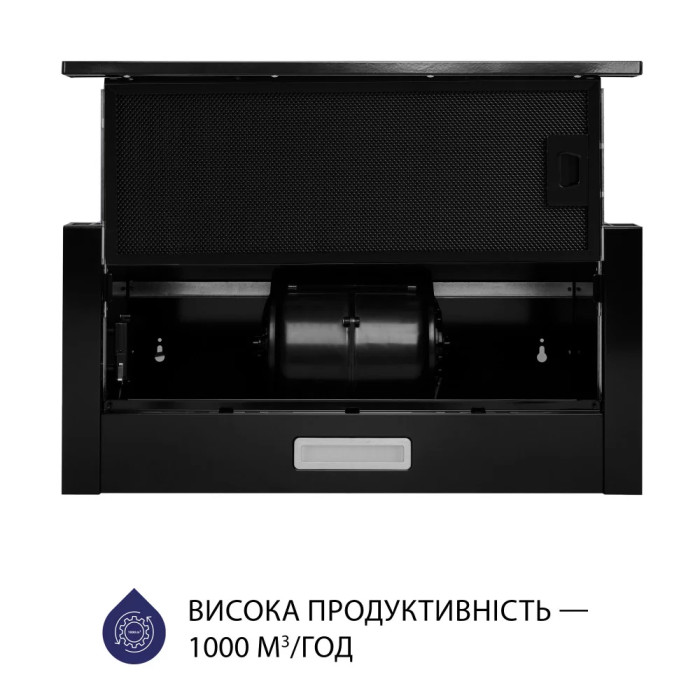 Алюмінієві фільтри виконані в тому ж кольорі, що і пристрій. Таке дизайнерське рішення робить витяжку стильною та елегантною, завдяки чому вона гармонійно виглядатиме в інтер'єрі кухні.
