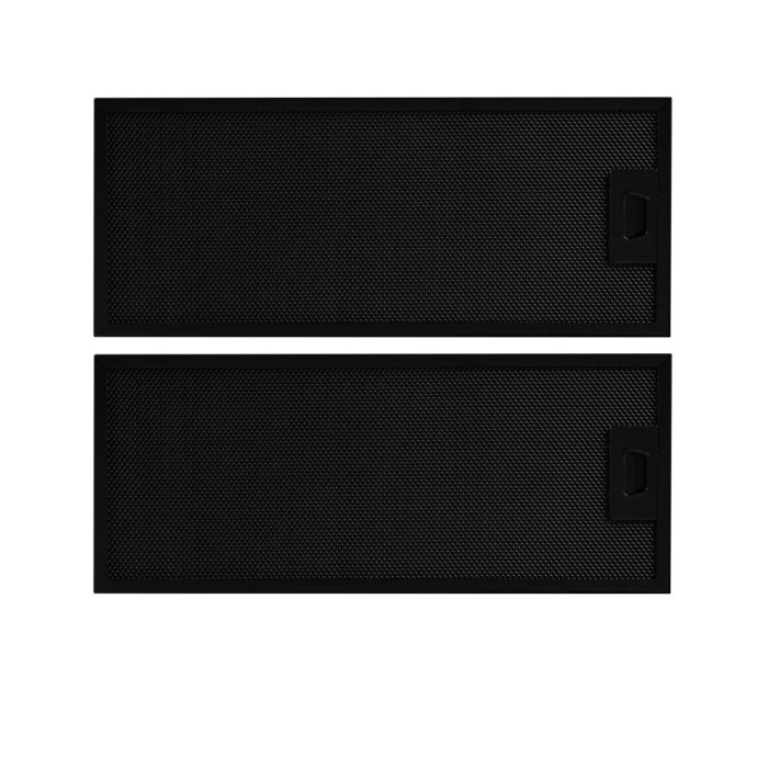Кухонна витяжка обладнана двома захисними алюмінієвими жировими фільтрами. Вони виготовлені з трьох шарів алюмінієвої сітки, що забезпечує надійний захист двигуна та інших деталей пристрою від потрапляння жиру та бруду. Очищення алюмінієвих фільтрів слід проводити кожні 2-3 місяці вручну в мильному розчині або в посудомийній машині.