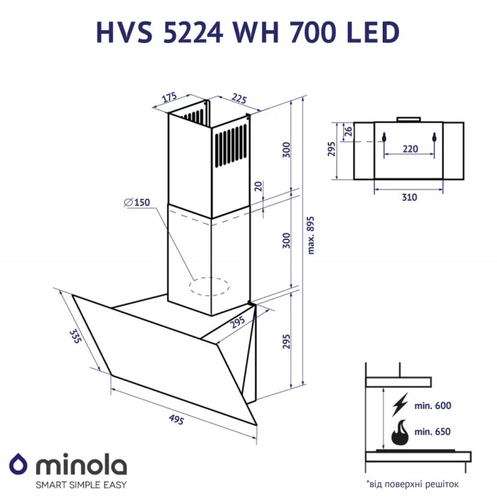 Витяжка MINOLA HVS 5224 WH 700 LED