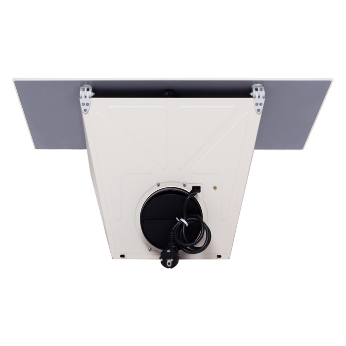 Витяжка обладнана сенсорною панеллю керування. Вона не тільки зручна в роботі, а підкреслює мінімалістичний дизайн пристрою. Панель розташовується на відкидній фасадній частині під декоративним склом, яке захищає її від забруднень. При активації функцій відповідні символи позначаються блакитним підсвічуванням, яке робить вигляд панелі ще приємнішим.